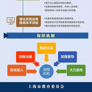 完善学前教育信息化管理体系。一是实施《上海市教育信息化2.0行动计划》(沪教委信息〔2018〕28 号),颁布《上海市托幼机构信息管理指导意见》《上海市幼儿园信息化建设与应用指南》,加大对托幼机构信息化建设与应用指导。二是完善上海市适龄幼儿入园信息登记系统,了解幼儿入园需求,优化学前教育资源配置。三是落实网络安全园长责任制,提高幼儿园网络和信息安全意识,确保学前教育信息网络和数据的安全。