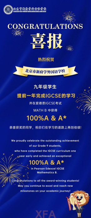 值得骄傲的是9年级学生提前一年完成IGCSE的学习,并在爱德思IGCSE考试MATHB中获得100%A和A*,在数学、进阶数学、化学、中文、英文等多学科A和A*率超过世界平均水平。更让我欣慰的是今年也有更多9年级学生加入学校的启赋项目,升入10年级。启赋项目为学生奠定坚实的学术基础与全球竞争力,为他们未来成功步入世界顶尖名校提供有力保障。