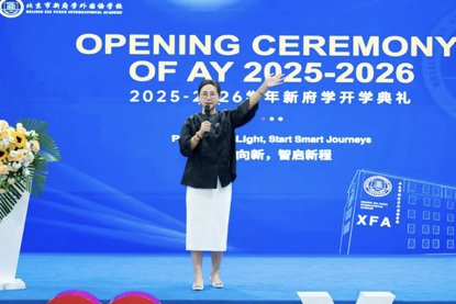 2025年9月4日,北京市新府学外国语学校处处洋溢着饱满热忱与无限希冀,以“逐光向新 智启新程”为主题的 2025 - 2026 学年第一学期开学典礼隆重举行。