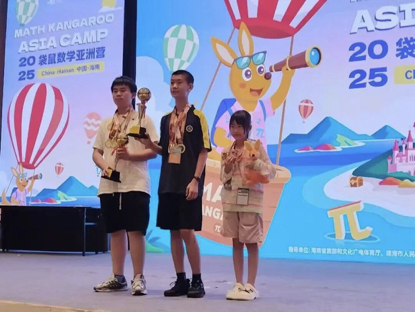 在数学竞赛中,我校继续保持强劲实力:不仅连续两年荣获AMC8学校卓越奖,连续五年澳大利亚数学挑战100%获奖,更在袋鼠数学思维挑战中刷新纪录,共斩获104项大奖,张惜淳、唐家辉两位同学在袋鼠亚洲营中摘得个人和团队金奖。