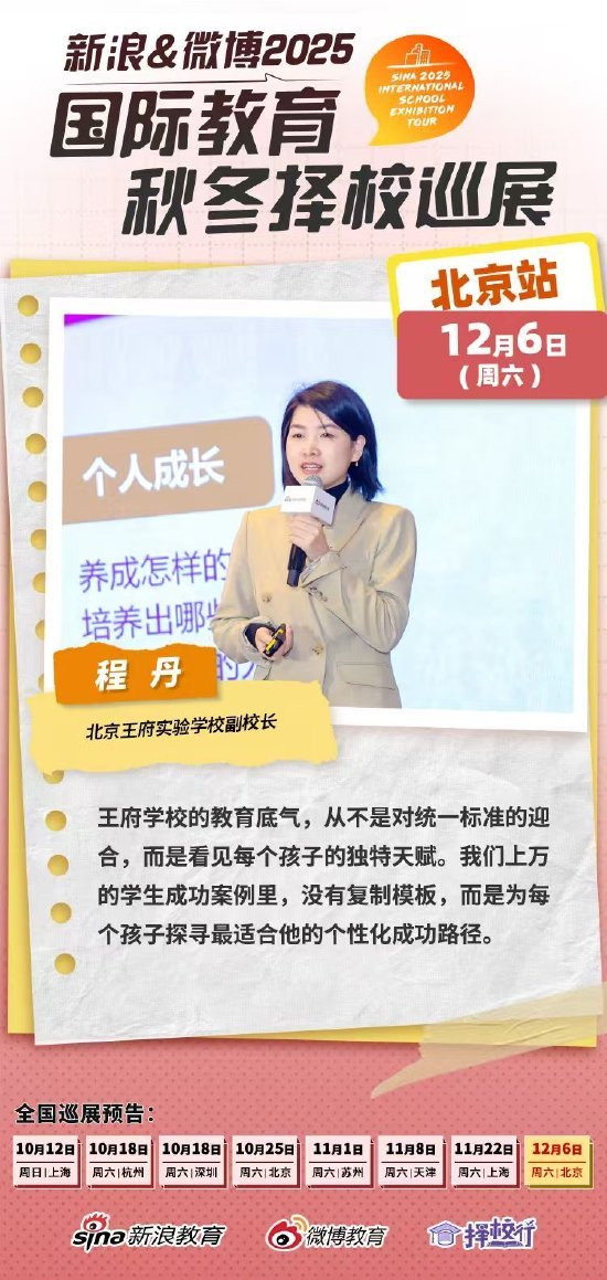 在此背景下,12月6日,由新浪教育、微博教育、择校行联合主办的新浪&微博2025国际教育秋冬择校巡展·北京站第二场顺利举行。活动汇聚京城80余所优质国际化学校招生官,搭建家长与校方面对面深度沟通的桥梁;同时邀请20余位资深校长、教育专家及优秀学生代表,从择校策略、课程规划、家庭赋能、教育趋势及学习实践等多元维度分享解惑,助力北京家庭精准把握国际教育动态,明晰升学路径。
