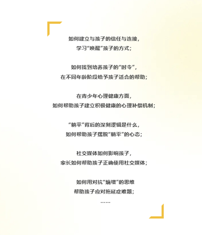 相信这些实操性极强的方法将为家长和教育工作者们带来启发,帮助大家由爱和教育的初衷出发,在真实的生活场景和教育场景中找到更为合适有效的教育方法,让关心不“添乱”,教育有“新方”,更为从容地应对BANI时代的教育挑战。