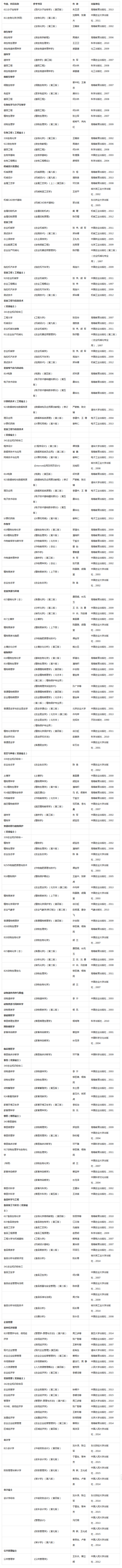 黑龙江八一农垦大学2018年硕士研究生招生参考书目: