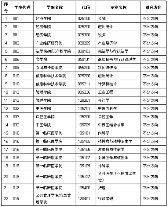 (六)第一志愿报考工商管理、公共管理、工程管理、旅游管理、会计、图书情报、审计专业学位的考生可相互调剂,但不得调入其他专业;其他专业考生也不得调入以上7个专业。第一志愿报考法律硕士(非法学)专业的考生不得调入其他专业,其他专业考生也不得调入该专业。