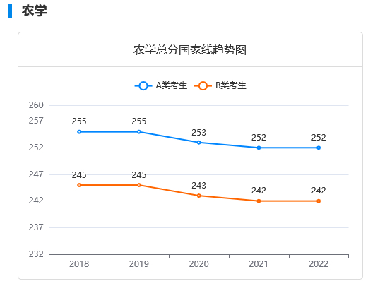 考研国家线是国家确定的进入复试的初试成绩基本要求,以下为农学近五年考研国家线及趋势图,供考研学子参考。