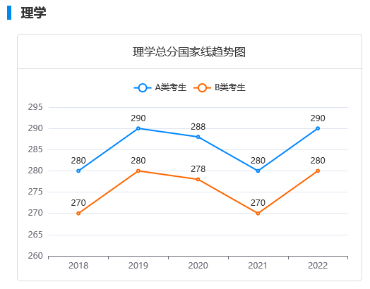 考研国家线是国家确定的进入复试的初试成绩基本要求,以下为理学近五年考研国家线及趋势图,供考研学子参考。