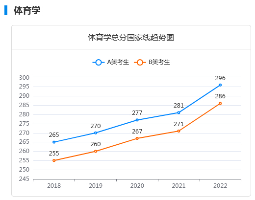 考研国家线是国家确定的进入复试的初试成绩基本要求,以下为体育学近五年考研国家线及趋势图,供考研学子参考。