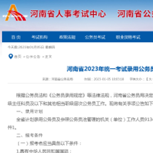 根据公务员法和《公务员录用规定》等法律法规,河南省公务员局决定组织实施全省2023年统一考试录用一级主任科员及以下和其他相当职级层次公务员工作。现将有关事项公告如下: