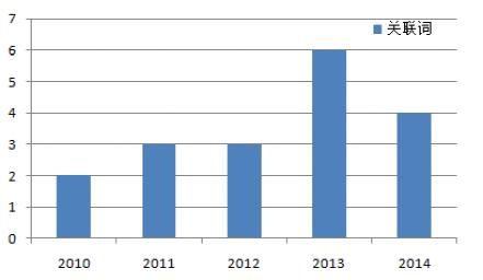 图2. 2010-2014广东省考主旨概括题每年关联词题量分布柱状图