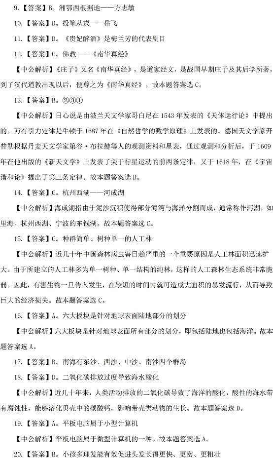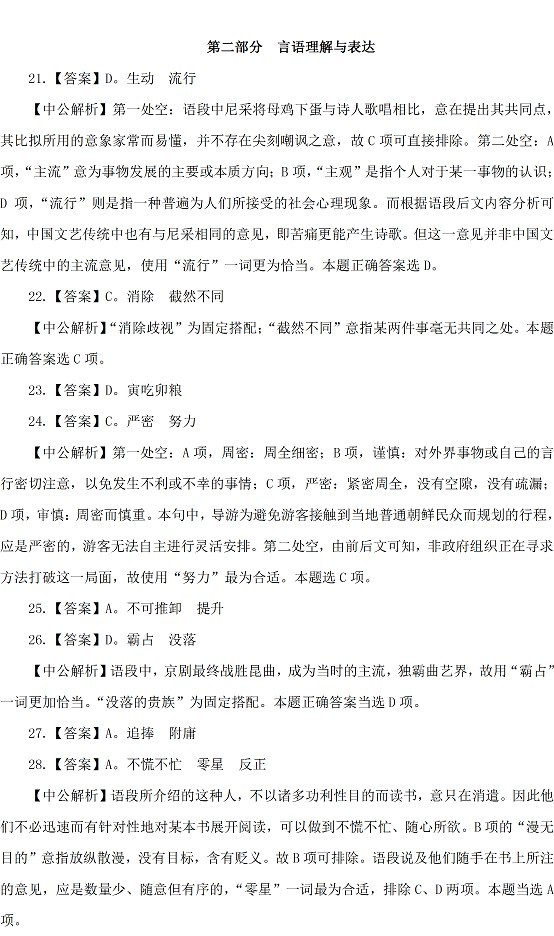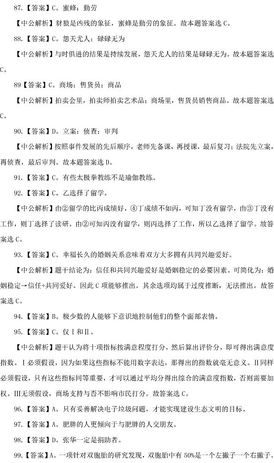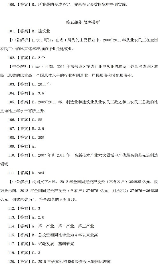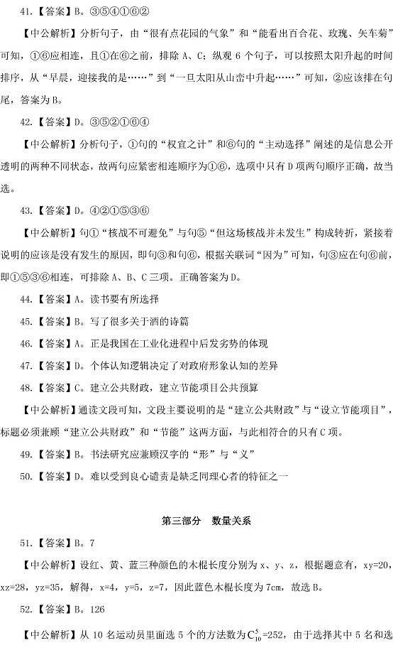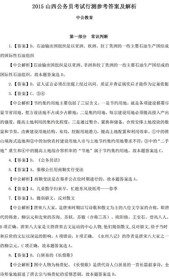 2015山西公务员考试行测参考答案及解析