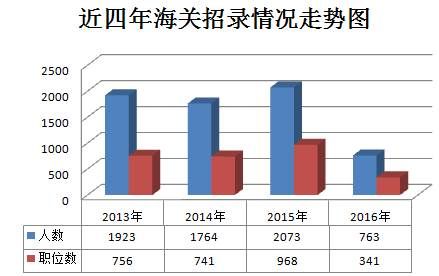 2016国家公务员考试于10月13日正式启动,本次考试将在10月15日至24日期间进行报名,11月28日至29日举行笔试。目前对于考生而言,迫在眉睫的是做好报名工作,而报名的核心其实就是选择职位。海关系统一直是国考招录单位中不可忽略的“主力军”之一, 今年招录规模大幅缩水,招录763人,341个职位,处于近四年来最低值,人数仅为去年的36%,仅占总招考人数的3%。下面,中公教育专家详细为考生分析下本次国考,海关系统的整体招录情况。