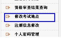 考试所在地是报考人员选择参加公共科目笔试的地点。如果此信息填写错误,还有补救的机会。考生可点击右侧“修改考试地点”进行考试地点修改。