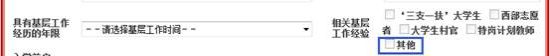 如实填写基层工作经历的年限,如果不是“四项目人员”,则勾选“其他”选项。