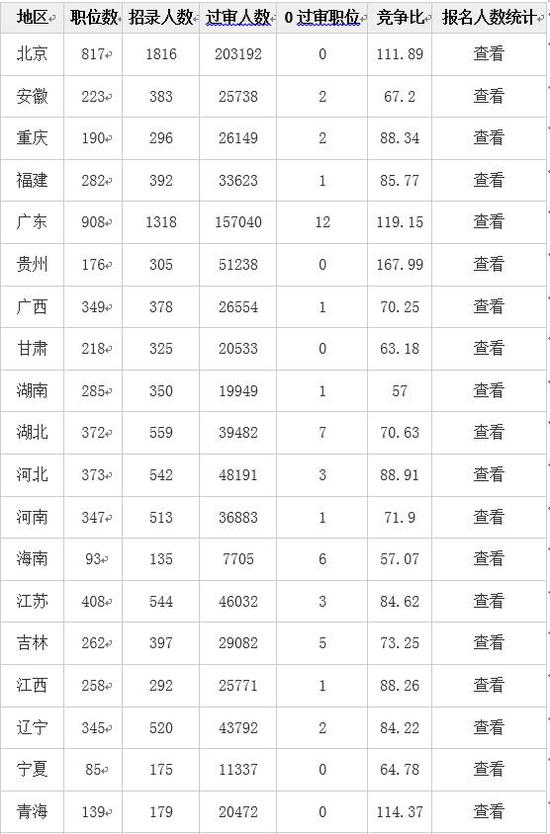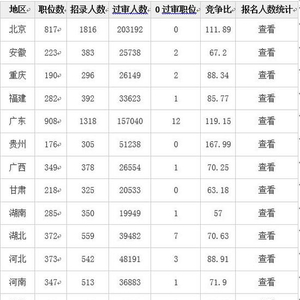 国考报名结束:6省份竞争比过百 云南183:1居首