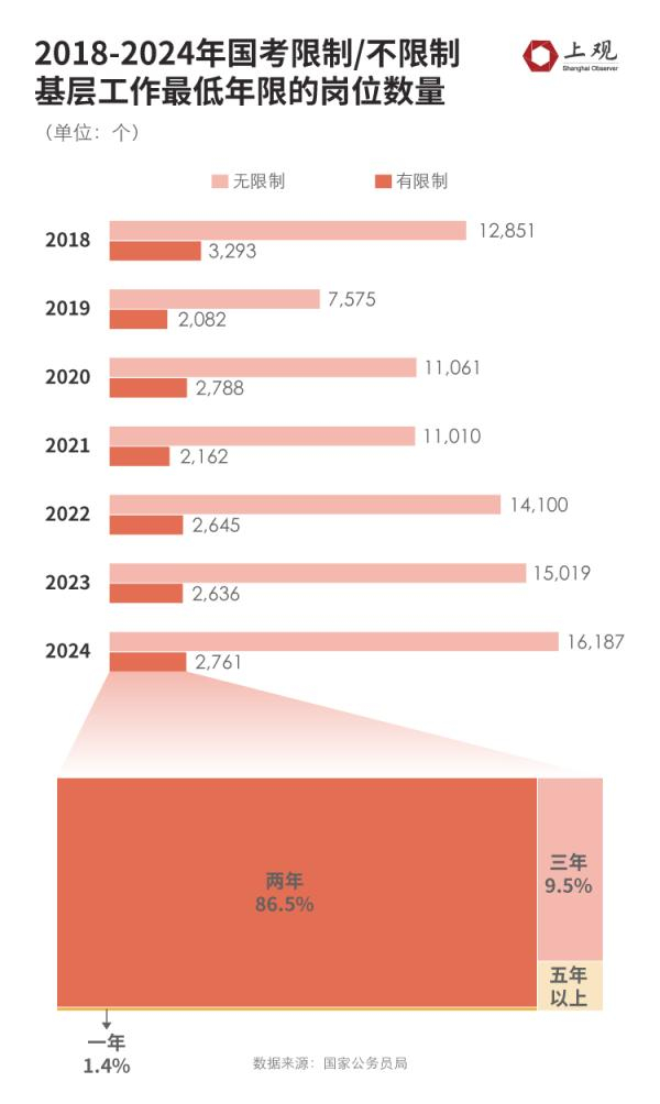 但整体来说,这样的岗位只是少数。实际上,国考对工作经验的限制在逐年放宽。