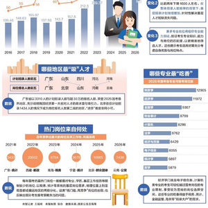 2026年度国考报名资格审查工作于昨晚6时结束,共有371.8万人通过了用人单位的资格审查,这一破纪录的数字再度反映出求职者对公职岗位的超高热情。本次招录放宽了报考者的年龄条件,有望对打破就业市场的“唯年龄论”形成示范作用;加码专业能力测试、招录岗位向基层倾斜等变化,也有利于精准筛选人才、夯实基层治理。报考数据还呈现出哪些趋势?我们为您一一解读。