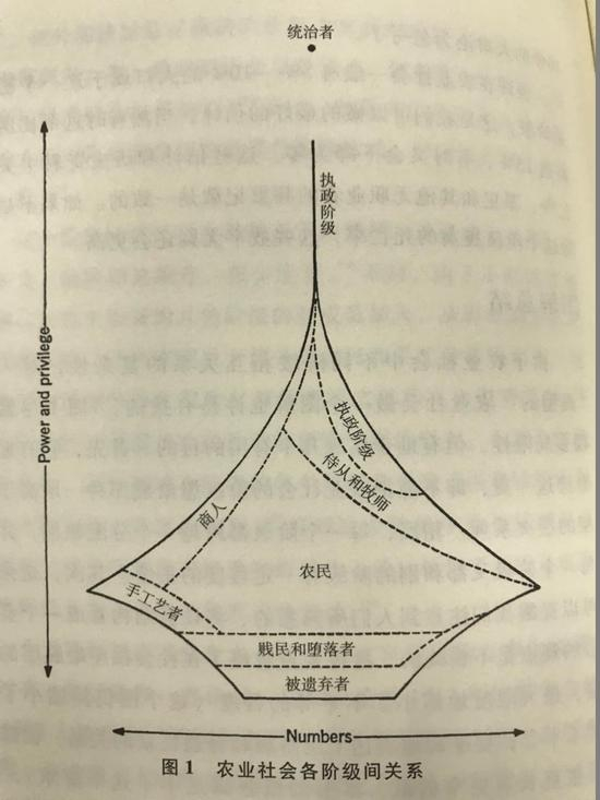 这是传统农业社会的阶级分布,各阶级间的流通性很差;虽然农民数量最多,但因为认知缺陷,基本没有机会到达权力顶端。