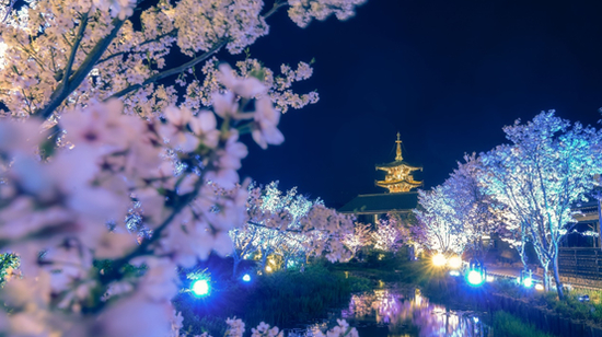 拈花湾的晚上,同样充满了魅力。精彩的实景表演,禅与艺妙趣结合。同时多个表演间衔接环环相扣,值得一观。晚风拂面,河面水灯与小镇的夜樱,交相辉映,情趣盎然。推荐在小镇小住一两晚,一边感受置身自然和梵天花海的愉悦,一边品味唐风禅意带给人的身心宁静。