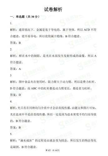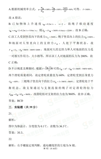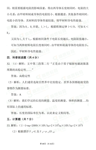 2020年北京市中考物理真题及参考答案