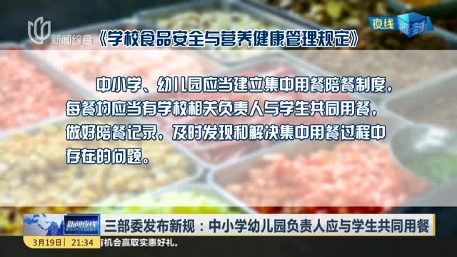 三部委发布新规:中小学幼儿园负责人应与学生共同用餐